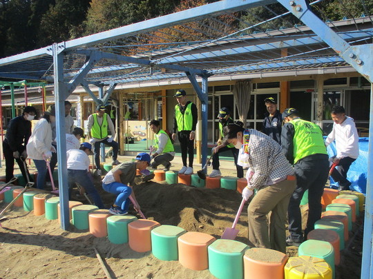 北野保育園にて、野外の清掃と消毒・保守管理を行いました。
