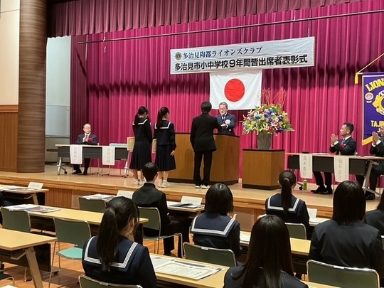 334B 2R/3Z 多治見陶都LC 第810回例会(小中学校9年間皆出席者表彰事業)が行われました。